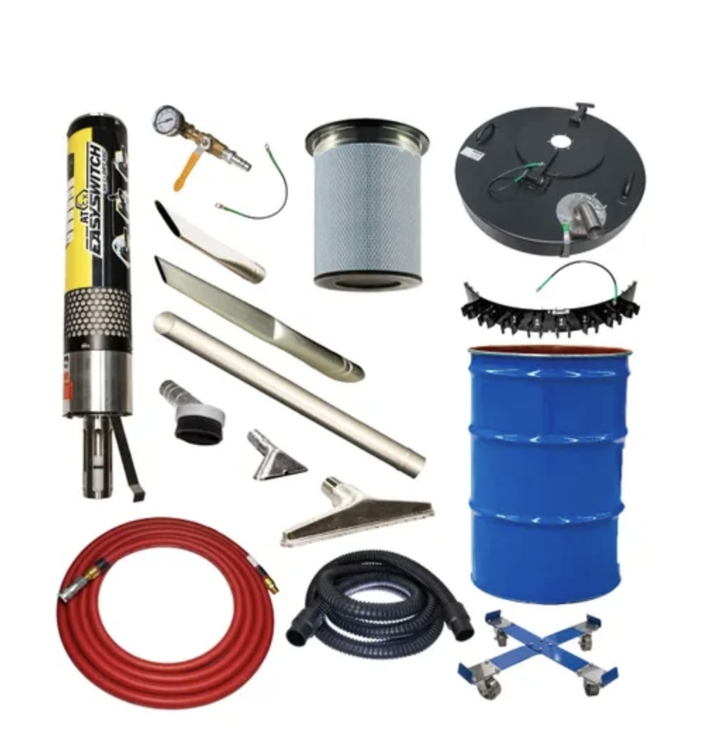 The EasySwitch Vacuum is an all-purpose pneumatic vacuum with the capability of handling any job Dry or Wet. Switching between vacuuming liquids or solids is as easy as removing the pleated filter when vacuuming liquids, and reinstalling directly into the open filter hatch when working with dry material. Like most of EXAIR's Intelligent Compressed Air products, this compressed air-driven vacuum function at a quite 79 decibels without purchasing additional noise muffling accessories. This quite operation feature protecs operator hearing. In addition, the EasySwitch Vacuum generally uses less compressed air to produce better or similar performance than other pneumatic competition. The EasySwitch Vacuum also features accesory options of both a standard and anti-static vacuum hose, drum dolly for convenient movement, premium metal attachments and tool holder. Providing customers with an effective and adaptable method of cleanup, the EasySwitch Vacuum is your all-encompassing solution to industrial housekeeping.