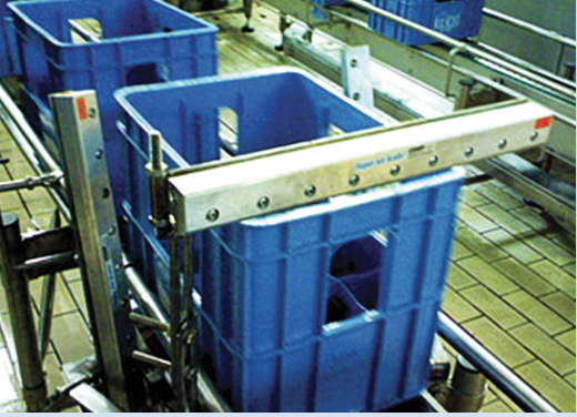 The solution of this problem is the company installed (3) Model 110018 18" (457mm) Super Air Knives to completely surround and blowoff the crates. Each Super Air Knife was placed on an angle with the sheet of air blowing against the crates and directing the water toward the floor. The crates were dried and the bottles could be loaded immediately.