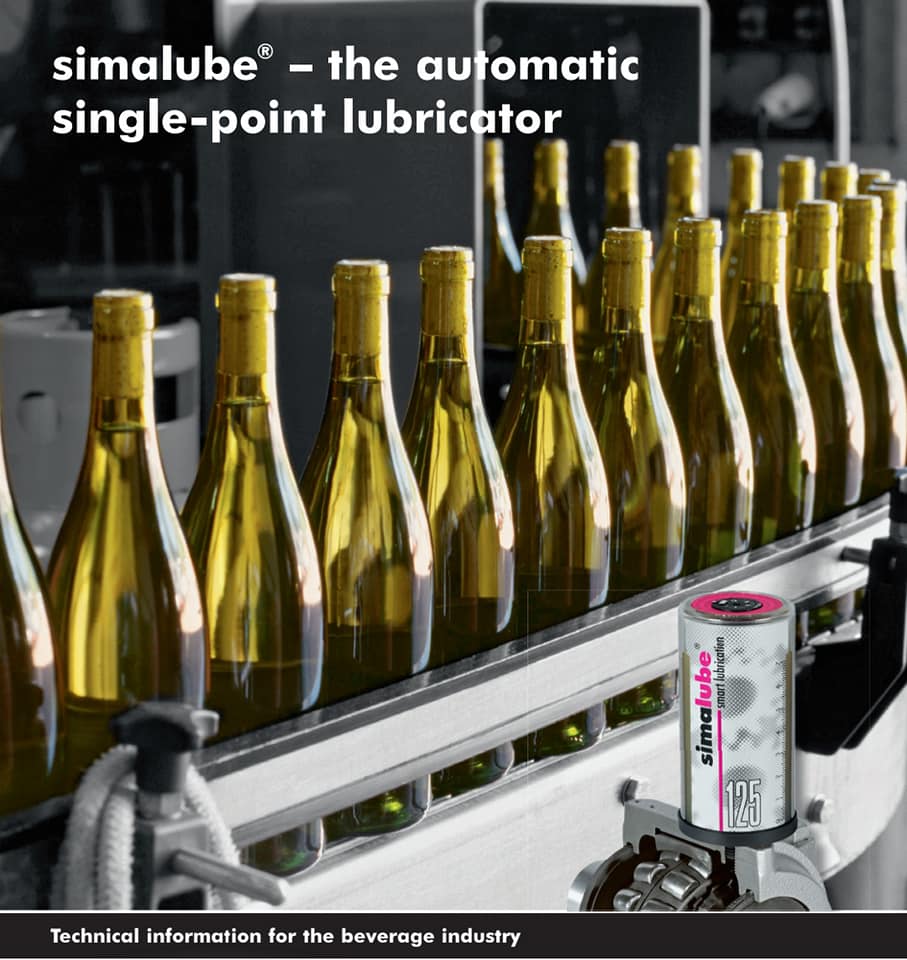 simalube applications in the beverage industry: Filing machines, Washing machines, Belt conveyors, Packaging and shrink-wrap machines, Presses, Refrigeration and freezer units, Label machines, Palletizer, Air conditioners.