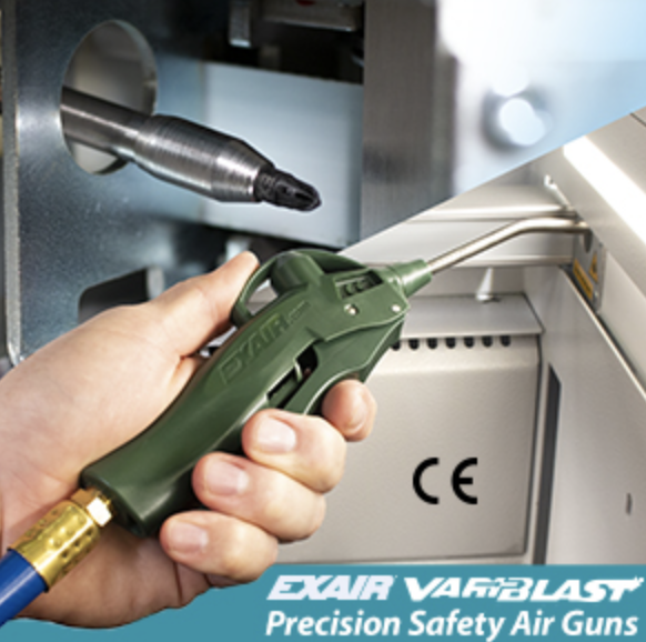 Safety and efiiciency are coupled with ergonomic design and engineered air nozzle technology to produce the VariBlast Precision Safety Air Gun - an essential tool for processes needing a handheld and effective blowoff solution. The VariBlast Precision Safety Air Gun provides a focused blast of air capable of handling tough jobs with remarkable ease. This lightweight air gun employs an engineered, variable flow trigger to produce a range of force values for different applications. Equally important, the VariBlast Precision Safety Air Gun, like all EXAIR Safety Air Guns, is CE compliant and meets all health, safety and environmental protection standards.