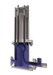 Compressed air lifts the cores from the tubes and the purge valve is opened. Contamination is released and washed away for collection.