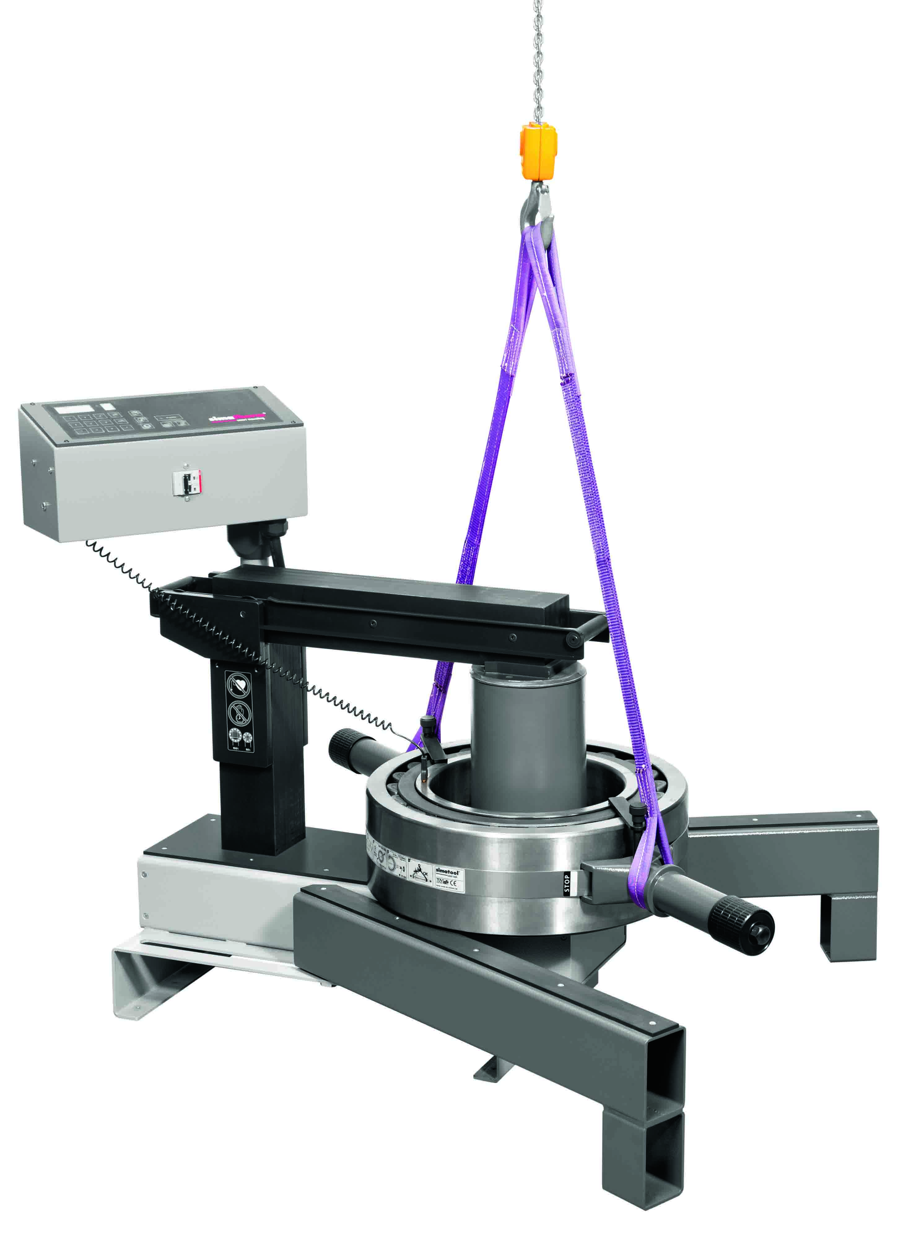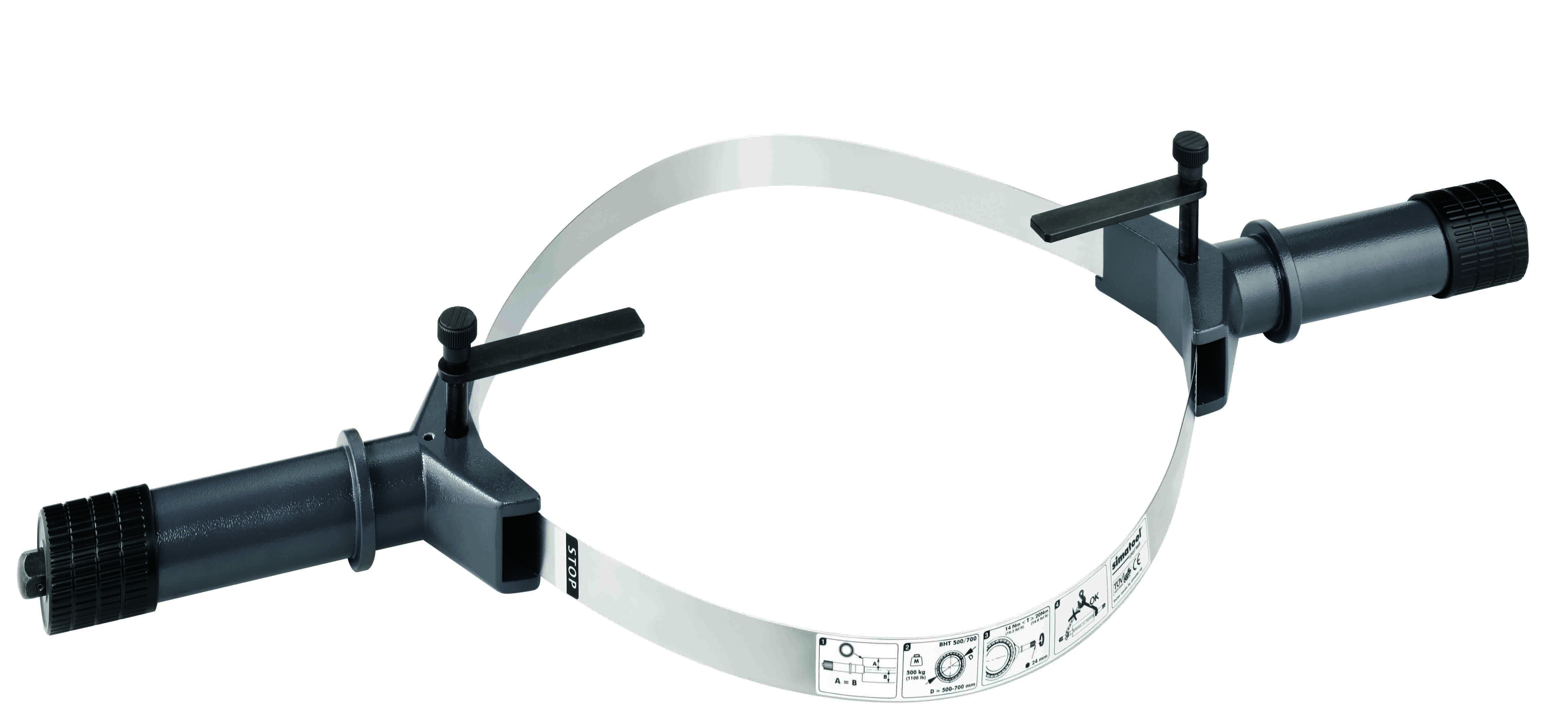 The simatool Bearing Handling Tool consists of two handles, two turning handles and steel strips that enclose the bearing at the outer race. Uniform tightening of the handles in the two support arms locks the steel strips to the outer diameter of the bearing. The two anti-rotation bars prevent relative movement of the inner/outer race in the case of self aligning ball bearings and spherical roller bearings.