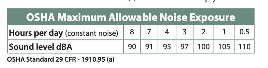 Hearing loss induced by high noise in the wrokplace is common problem. Exposure to high noise levels for an extended period of time can lead to permanent hearing loss for workers not wearing proper hearing protection. The Digital Sound Level Meter can help employers protect workers by monitoring noise levels so they don't exceed the limits shown in OSHA Standard 29 CFR - 1910.95(a). Failure to comply can result in hefty fines.